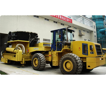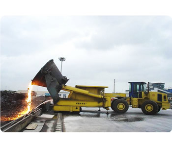 翻罐方式的创新:在工作大臂上将拔销结构分离、并巧妙的增加一组伸缩油缸,设计出小臂结构, 使渣罐倾翻达到180度,使卸料更加流畅彻底。并根据现场工况,首创的自敲罐技术填补了国内技术空白。